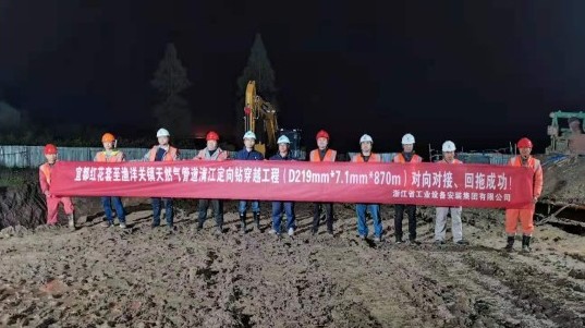 天然氣長(zhǎng)輸管道工程清江段定向穿越回拖成功2021-04-16